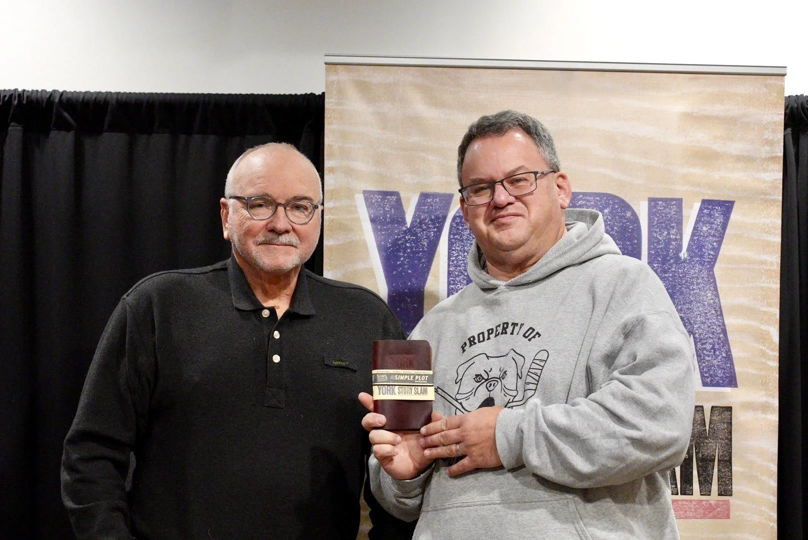 Congratulations to Matt McDunnell, who was named the winner of our 2025 Grand Slam - the first person to do so twice! Matt competed with the other winners from this year's monthly open mic story slams and earned the title of Best Storyteller in York. The theme for the evening was Oops!, and Matt (left) is pictured here with our emcee and 2016 Grand Slam champ, Brad Jennings.